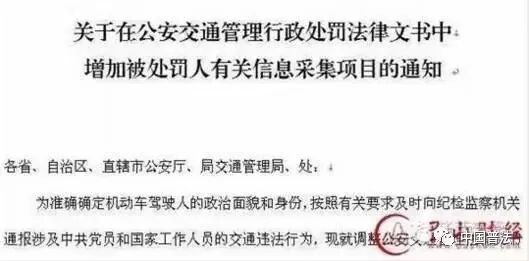 017年12月18日,公安部交通管理局下发了《关于在公安交通管理行政处罚法律文书中增加被处罚人有关信息采集项目的通知》。