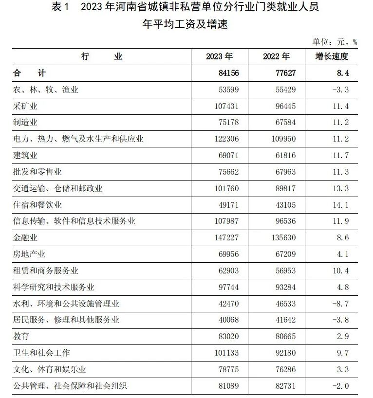 2024年7月5日,河南省统计局《河南省2023年城镇单位就业人员年平均工资情况》发布: